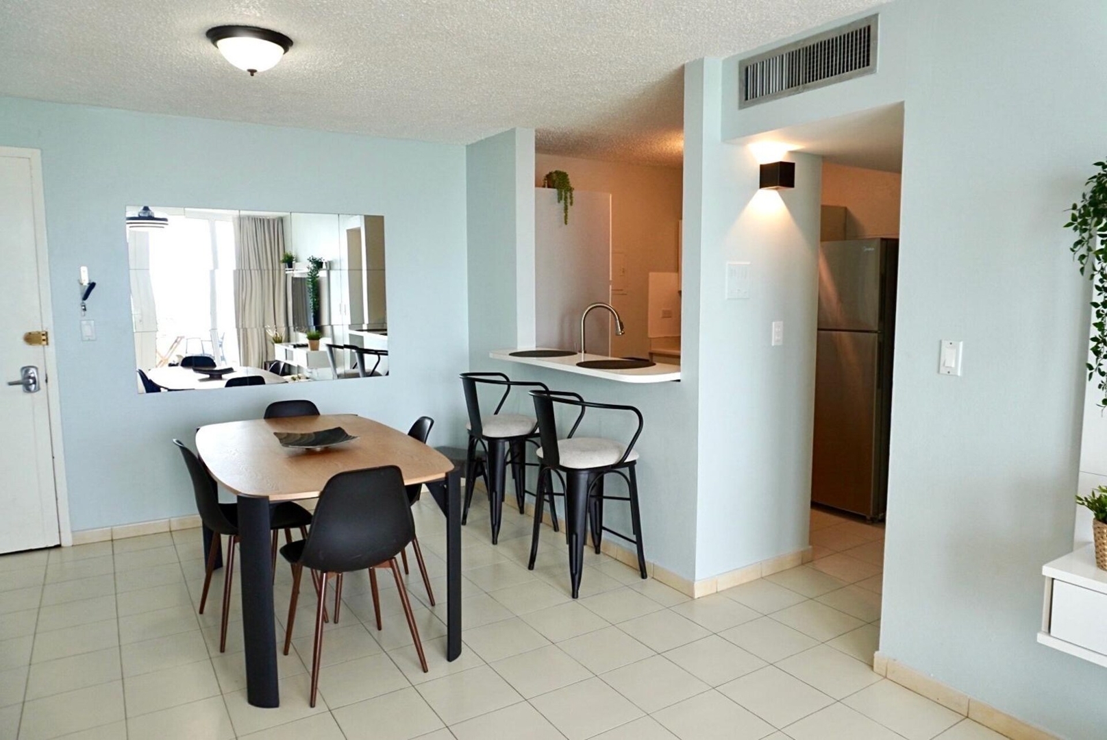 Enjoy breathtaking ocean views from Marbella del Caribe 2B/1bath apt boasts premium features: Sleeps 7, with balcony beachfront view, private underground parking at Isla Verde beach. Designed for comfort and style, ideal for families, friends, couples, remote workers. Comfortable beds, modern décor, Fast Wi-Fi, smart tvs, Central A/C, private, safe, and central, pool, tennis, laundry room, gym. Just minutes from Beach bars & nightlife, Supermarket, Walgreens, Old San Juan and more.