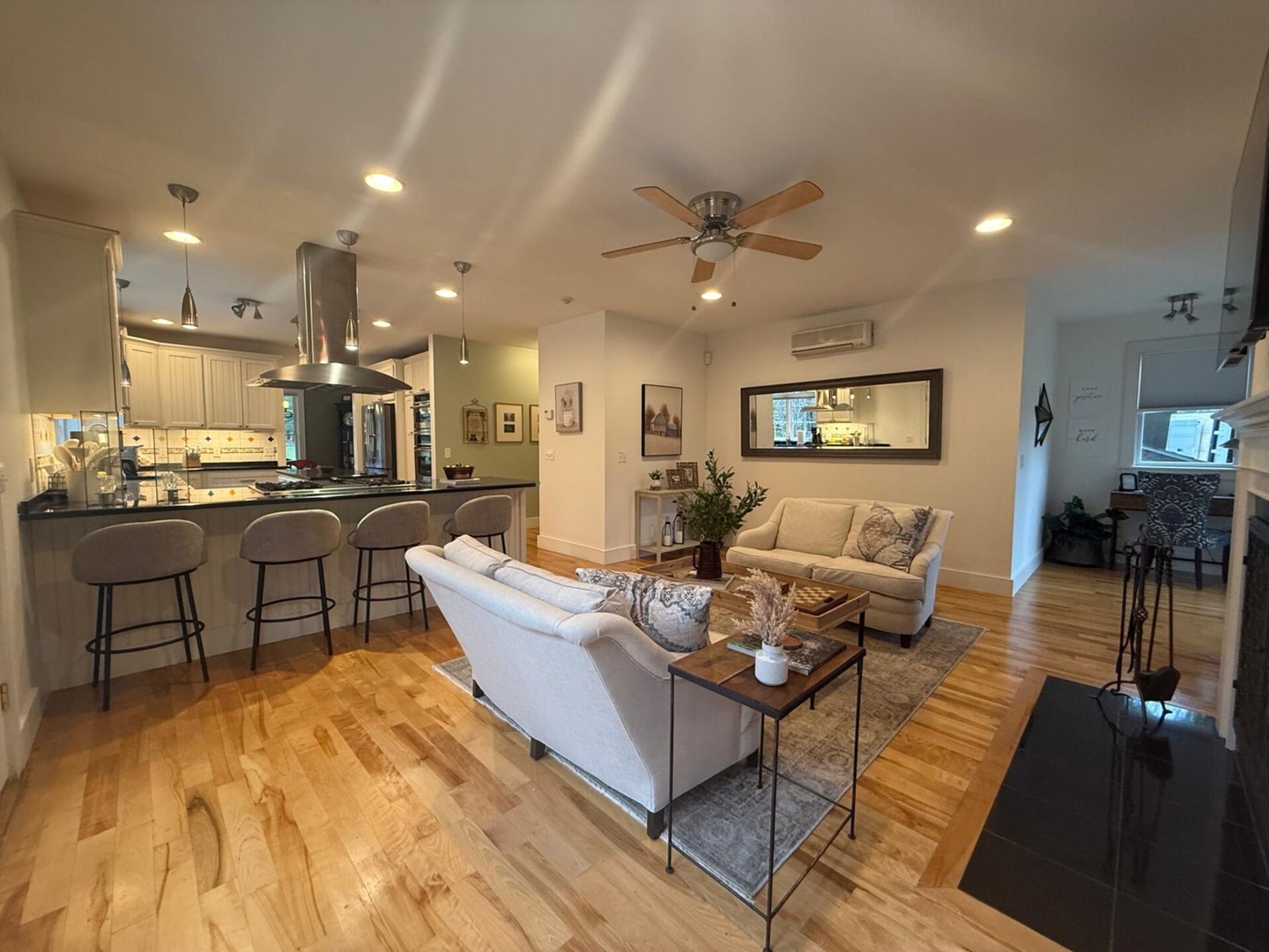 • Cozy fireplace and smart TV with streaming apps